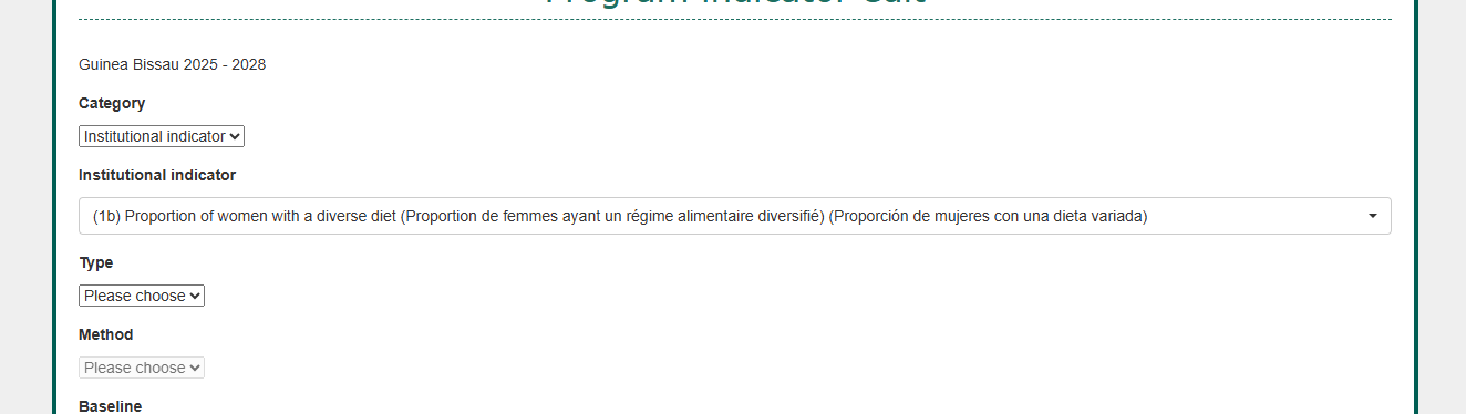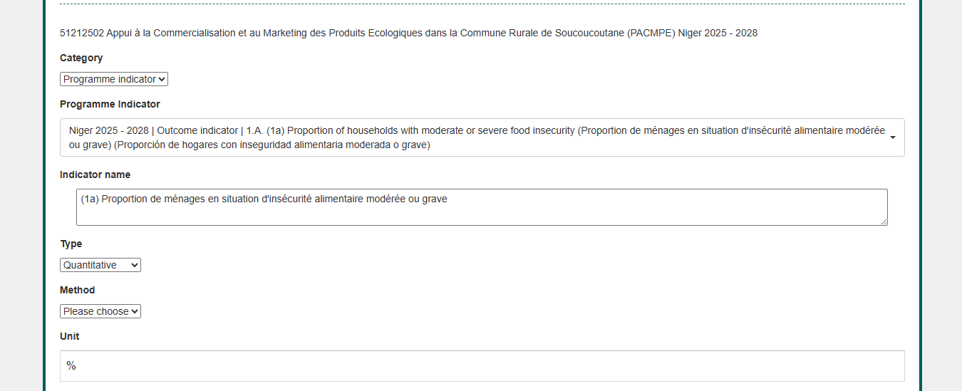 Comme ça ne s'affiche pas correctement pour plein d'indicateurs (regarde par exemple les indicateurs du programme national Guinée-Bissau https://monitoring.swissaid.ch/program/planning/39), il faudrait pouvoir modifier ces paramètres après coup. Sinon, je vais devoir à nouveau saisir et relier tous les indicateurs dans les programmes et projets.